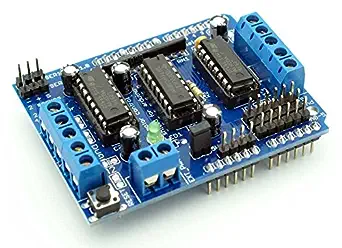 - 4 H-Bridges: L293D chipset provides 0.6A per bridge (1.2A peak) with thermal shutdown protection, internal kickback protection diodes. Can run motors on 4.5VDC to 25VDC.