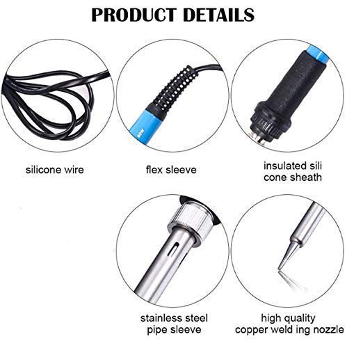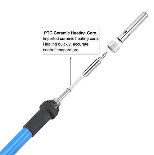 60W 220V Temperature Adjustable Electric Welding Solder Soldering Iron Rework Station Handle Heat Pencil Tool -Blue (Soldering Iron With Bits) AB0221