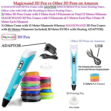 ABS 3D Printing Pen with LCD Display & FREE 3,1.75 mm, 10 Metre Each PLA Filament Refills【5 Yrs & Up】【Pack of 1】【Multi-Colored】AB0168