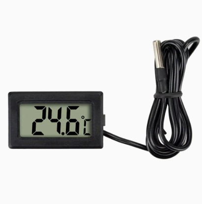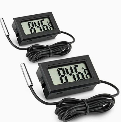Electronic Digital LCD Display Thermometer with Waterproof Probe – Premium quality temperature measuring device ideal for aquariums, refrigerators, freezers, incubators, terrariums, and water tanks; equipped with a large clear LCD screen for easy reading, accurate sensing probe for real-time monitoring, wide temperature range from -50°C to +70°C (-58°F to +158°F) with ±1°C precision, durable lightweight body, 1m flexible cable for convenient placement, portable and space-saving design, powered by replaceable LR44/AG13 button cell (included), ensures reliable, quick, and hassle-free temperature tracking for home, kitchen, pet care, food storage, scientific use, and daily household applications.