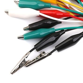 - Each cable is equipped with two crocodile clips (alligator clips) at both ends. The clips are designed to firmly grip onto wire terminals, pins, or other metal contact points, ensuring secure and reliable connections.