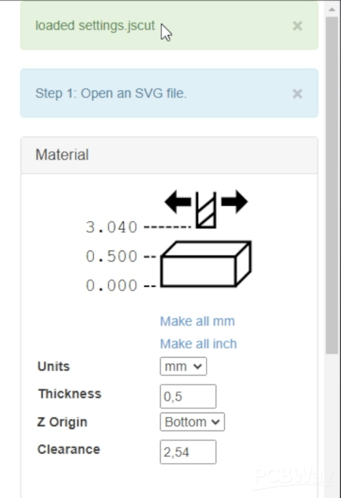 We will use the JS-Cut web tool to convert the vector file to G-code.