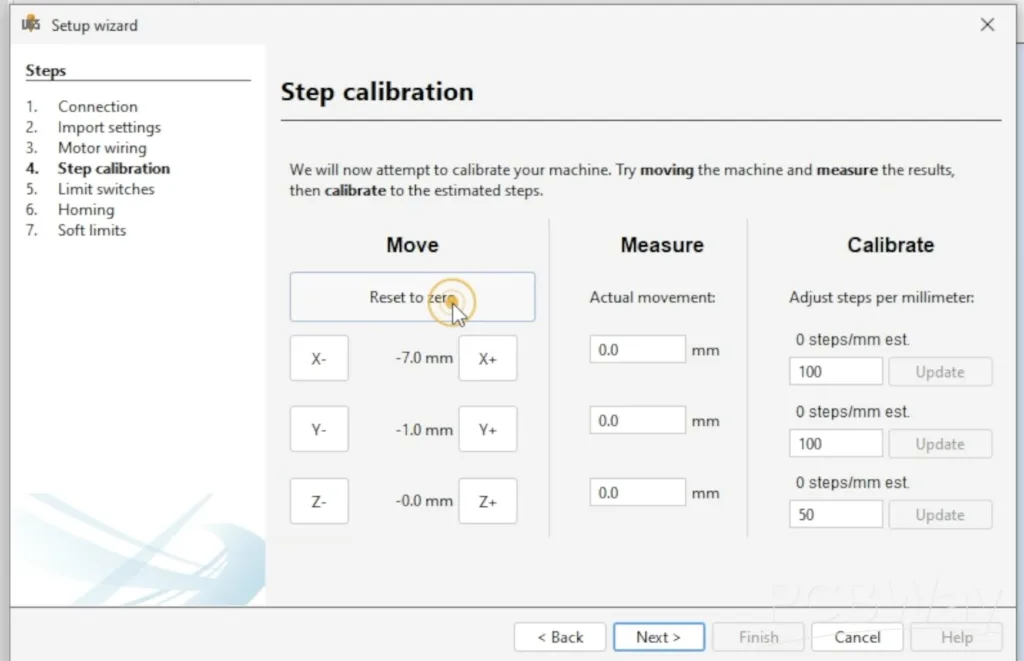 You can then move the plotter axes and complete the update with the ‘Reset to Zero’ button when you reach the optimal positioning. Then press the Finish button and the plotter start position will now be defined