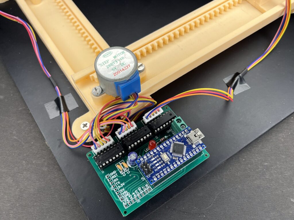 After soldering, let’s assemble the circuit board to the project. Each axis input is marked on the circuit board, make the connections and plug in the Arduino board.