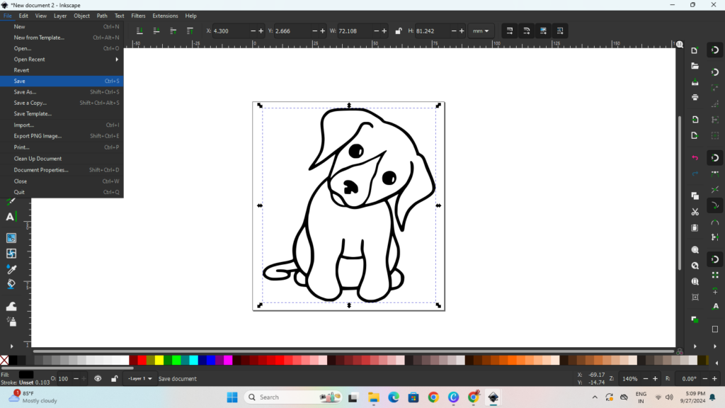 Then convert the image to vector and delete the previous inserted image. Now the vector image is ready for drawing, save the created image.